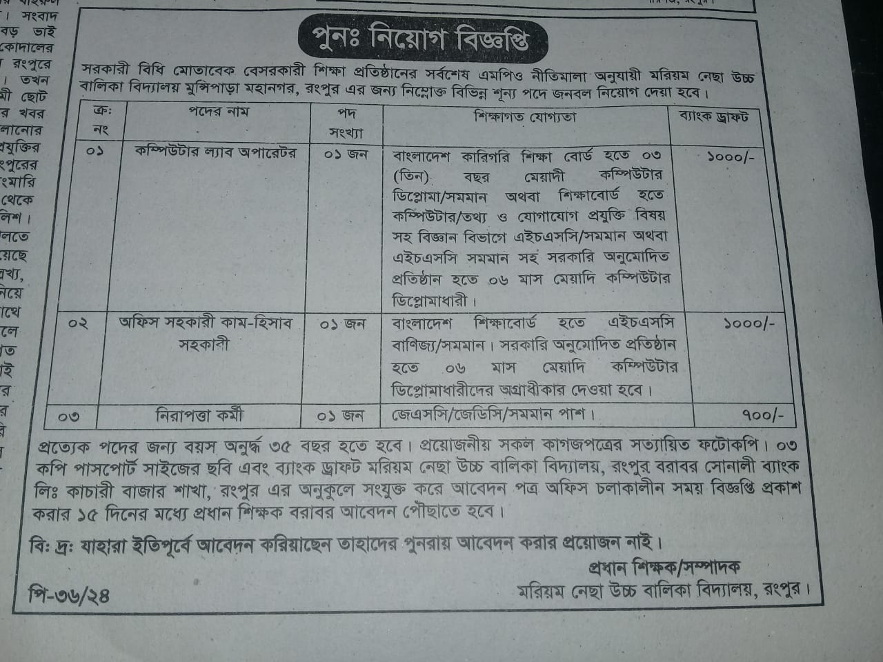 নিয়োগ বিজ্ঞপ্তি-দৈনিক স্বাধিনমত